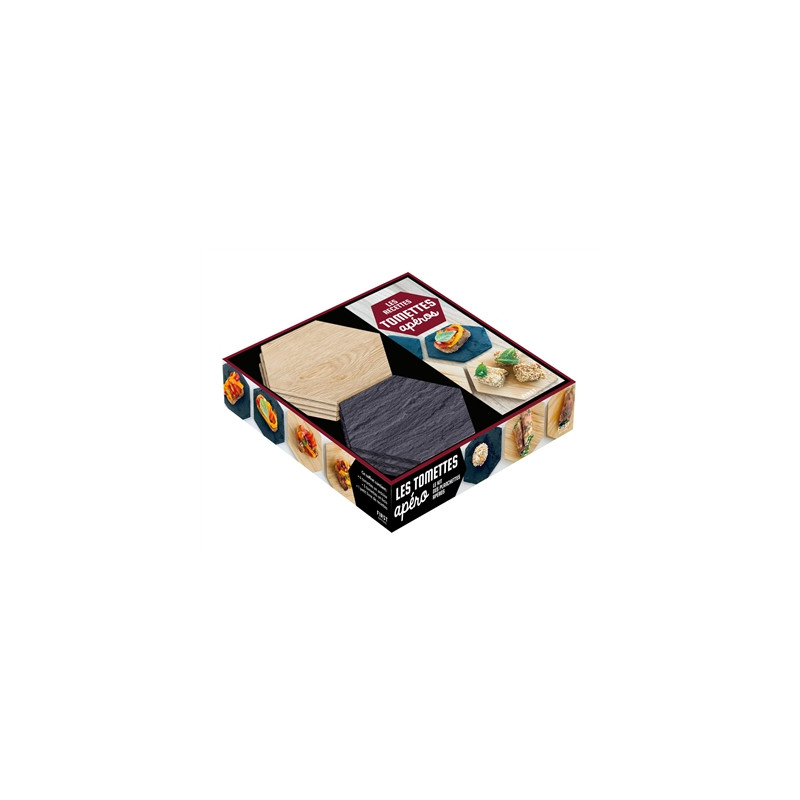 - 4 tomettes en ardoise, 3 tomettes en bois et un petit livre de recettes