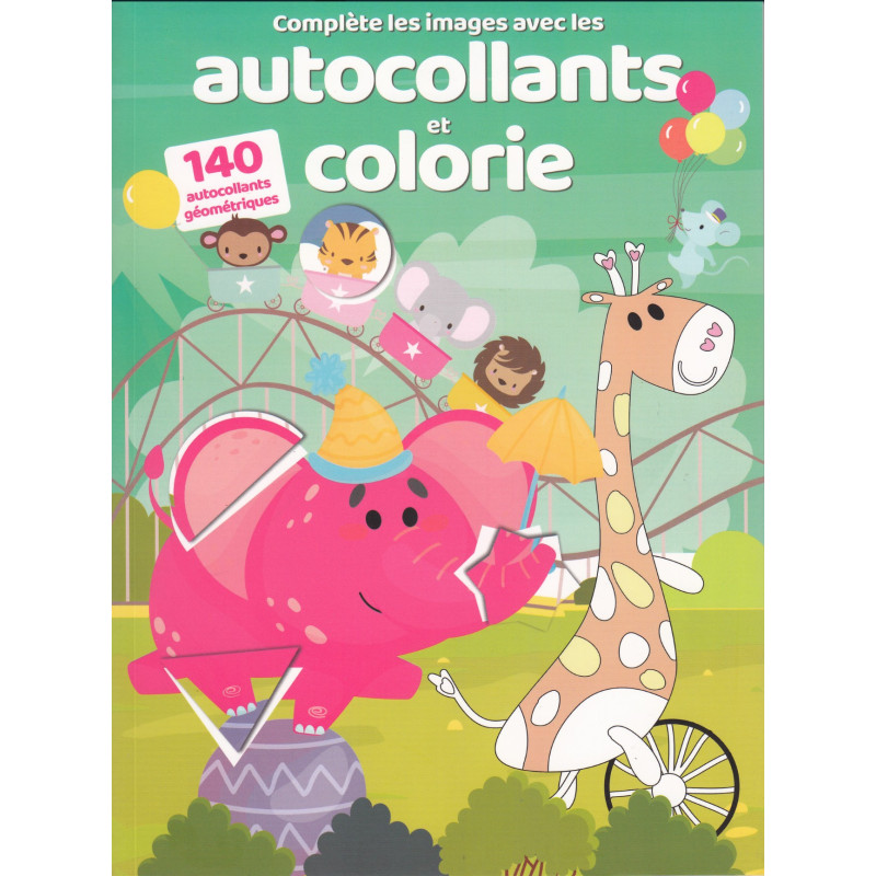 Complète tous les animaux avec les autocollants géométrique et colorie les dessins.