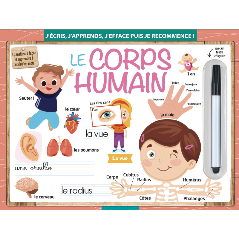 J'écris, j'apprends, j'efface puis je recommence ! La meilleure façon d'apprendre à tracer le corp humain. (avec un feutre effaçable)