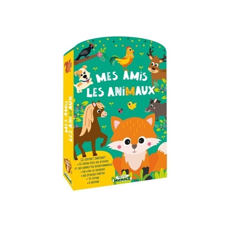 Tous les animaux mignons de l'univers "Mon P'tit Hemma" réunis dans un joli coffret cadeau aux activités riches et variées : Des décors à compléter avec des gommettes, un livre de coloriage, des stickers fenêtre, des super tattoos et des crayons de couleur !...