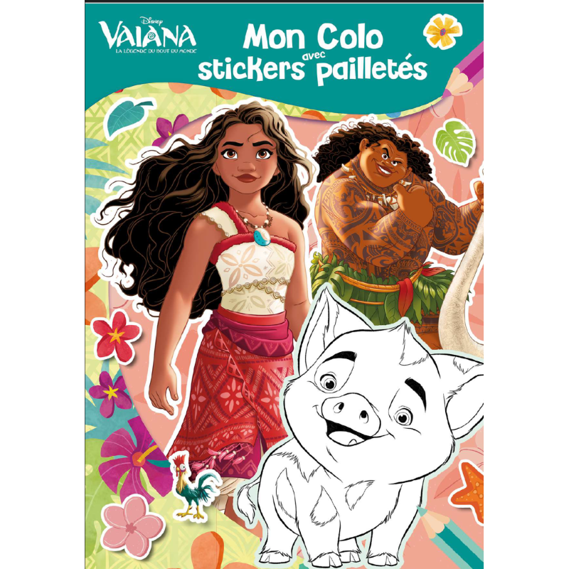 32 coloriages + 1 page de stickers aux couleurs de Vaiana
