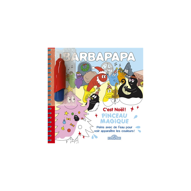 Des décors sur le thème de Noël à peindre avec de l'eau pour faire apparaître la famille Barbapapa. Après quelques secondes, les couleurs disparaissent et l'enfant peut recommencer à l'infini.