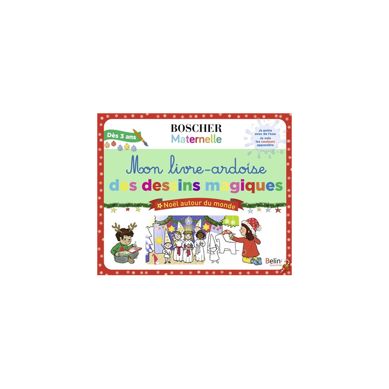 Des dessins à colorier à l'eau pour révéler les couleurs et faire apparaître les détails, accompagnés d'activités ludiques et progressives autour des traditions de Noël dans divers pays.