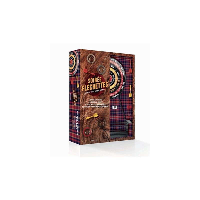 Un jeu de fléchettes où il faut boire des shots d'alcool en fonction de la zone de la cible atteinte. Avec un livre de recettes de cocktails.