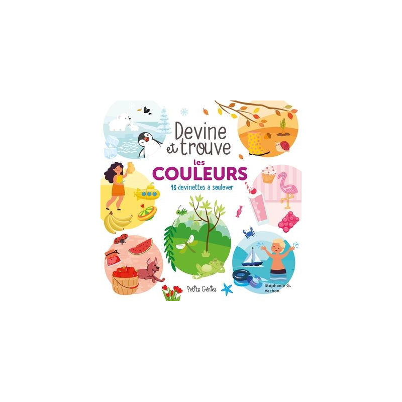 Sauras-tu résoudre les devinettes de ce livre ? Lorsque tu auras trouvé la solution, soulève le volet et découvre la réponse ! Ensuite, cherche l'élément dans la page. Attention, il se cache parmi d'autres images de la même couleur ! Un jeu de devinettes combiné à un cherche et trouve. Voilà un amalgame parfait pour amuser les enfants, tout en développant leur vocabulaire !...