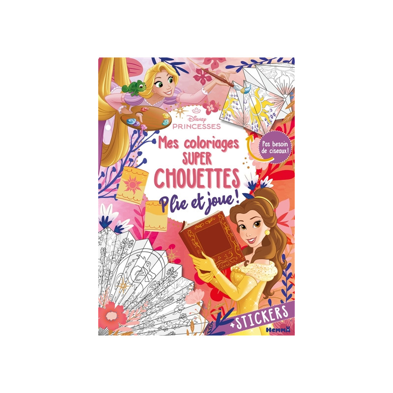 Disney Princesses : Mes coloriages super chouettes : Plie et joue ! - + Stickers - Pas besoin de ciseaux !